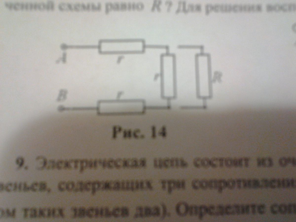 Какое сопротивление R следует соединить параллельно с сопротивлением r (рисунок), если известно что , что эквивалентное сопротивление полученной схемы равно R?