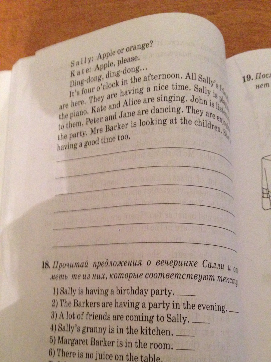 18. Соответствуют тексту: 1) 3) 4) после 6 предложения еще что-то есть? не видно на фото. Так же на первой странице не виден конец текста. Ей подарили игрушечную кошку, а второго подарка не узнать какой.