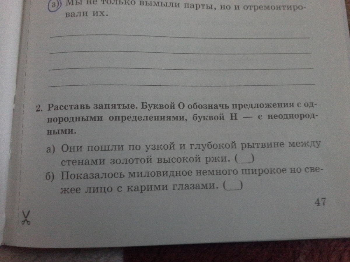 Расставь запятые.Буквой О обозначь предложения однородными определениями,буквоц Н -с неоднородными членами