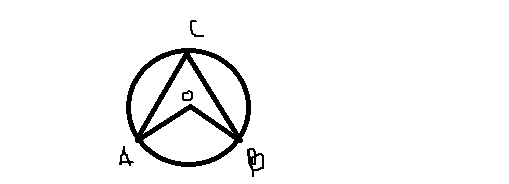 вписанный угол в 2 раза меньше центрального угла опирающегося на одну и ту же дугу