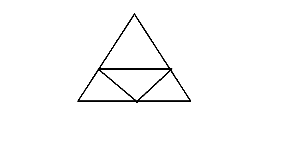 Как то так))Вообще это примерное решение...Но я поняла это так,1-треугольник верхний самый большой,2-й- средний, и 2 маленьких нижних по бокам.