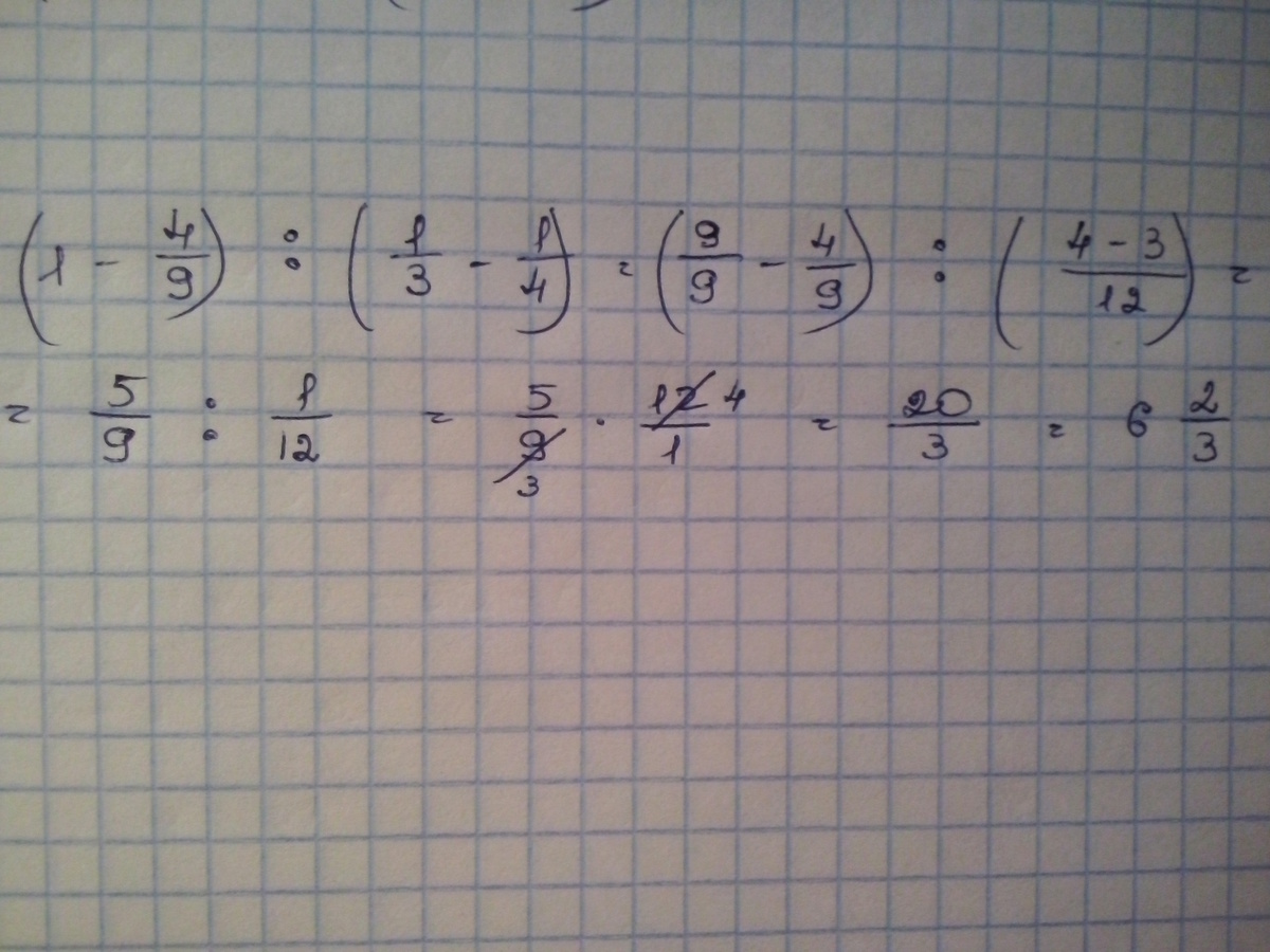 (одна целая отнять четыре девятых) разделить (одна третья отнять одну четвертую)