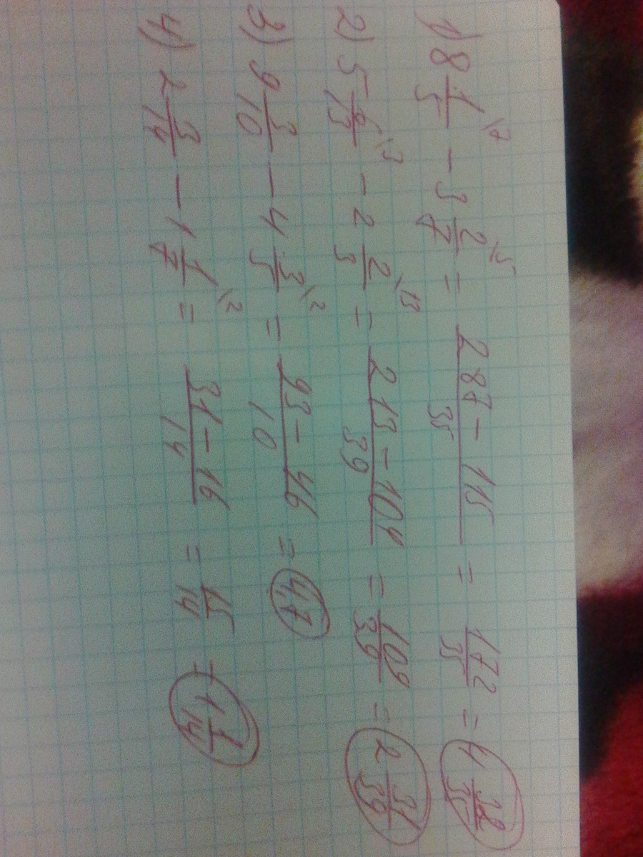 8 1/5- 3 2/7=8 7/35-3 10/35=7 42/35- 3 10/35=4 32/35