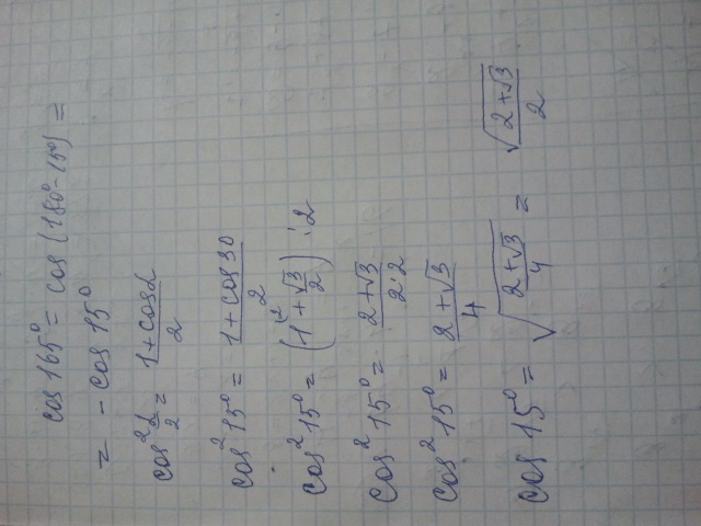 cos165⁰=cos(π-15⁰)=-cos15⁰;