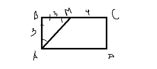 В)Биссектриса угла А прямоугольника АВСD пересекает сторону ВС в точке М. Найдите площадь прямоугольника, если ВМ=3 см и МС=4 см.
