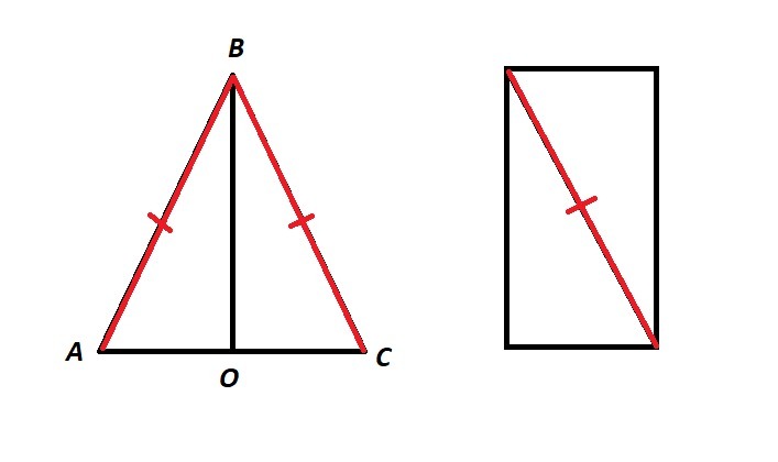 Равнобедренный треугольник ABC разрезали по прямой BO. Из получившихся равных прямоугольных треугольников сложили прямоугольник. Какой стороне треугольника равна диагональ прямоугольника?