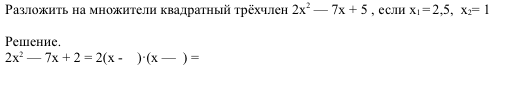 ax^2+bx+c=a(x-x_1)(x-x_2), где x_1,x_2 - корни квадратного уравнения.