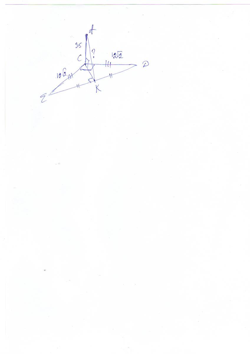 1) Через вершину прямого угла С в равнобедренном треугольнике СDE проведена прямая CA, перпендикулярная плоскости треугольника. Известно, что СА = 35 дм, CD=