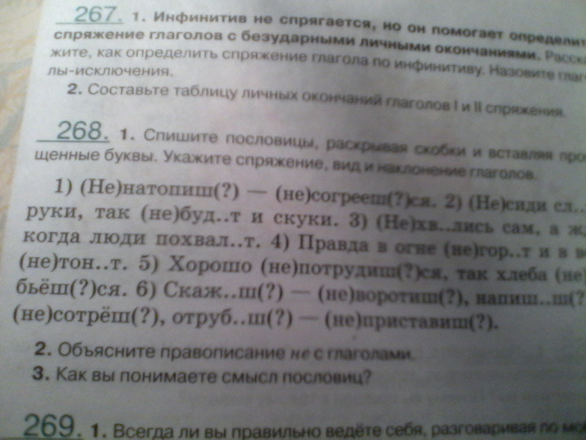 Не натопишь -мне согреешься. Не сиди сложа руки - так не будет скуки. Не хвались сам, а жди, пока люди похвалят. Правда в огне не горит и в воде не тонет. Хорошо не потрудишься, так хлеба не добьешься. Скажешь - не воротишь, напишешь - не сотрешь, отрубишь - не приставишь.