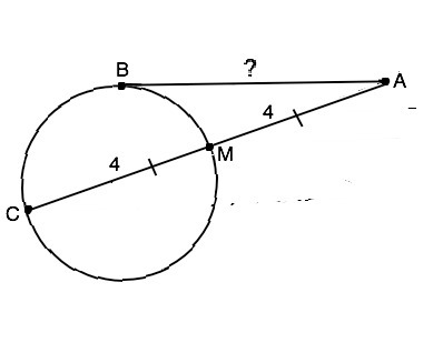 Из точки вне окружности проведены касательная и секущая разделенная пополам окружностью. Какова длина касательной если часть секущей ограниченная