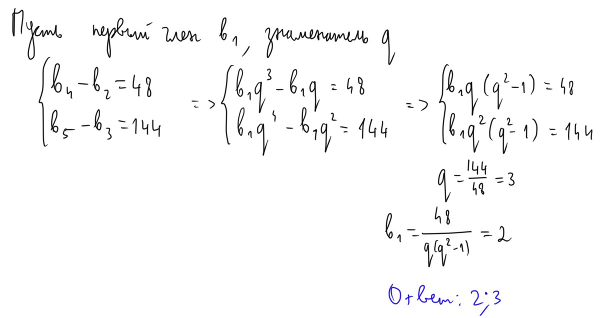 равна 48, а разность между пятым и третьим членами равна 144. Найдите