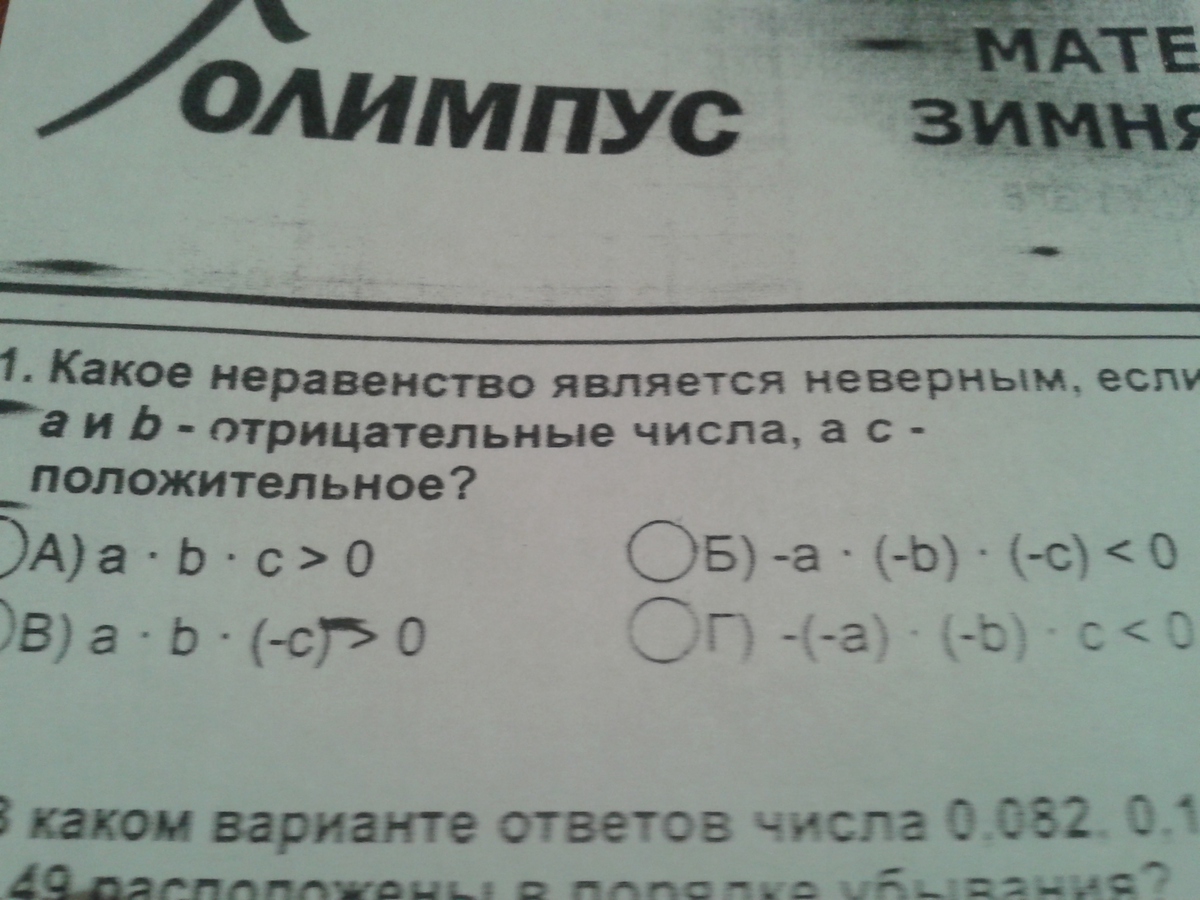 ответ в) там число будет отрицательным, а число отрицательное меньше 0