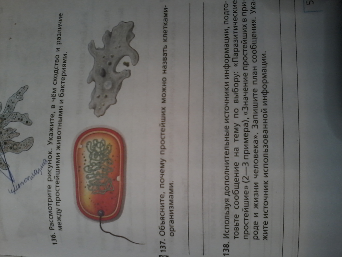 плизз помогите пожалуйста в чем сходится бактерия и простейшей амёба.обесните , почему простейших можно назвать клеточном организмами номер 136 и 137