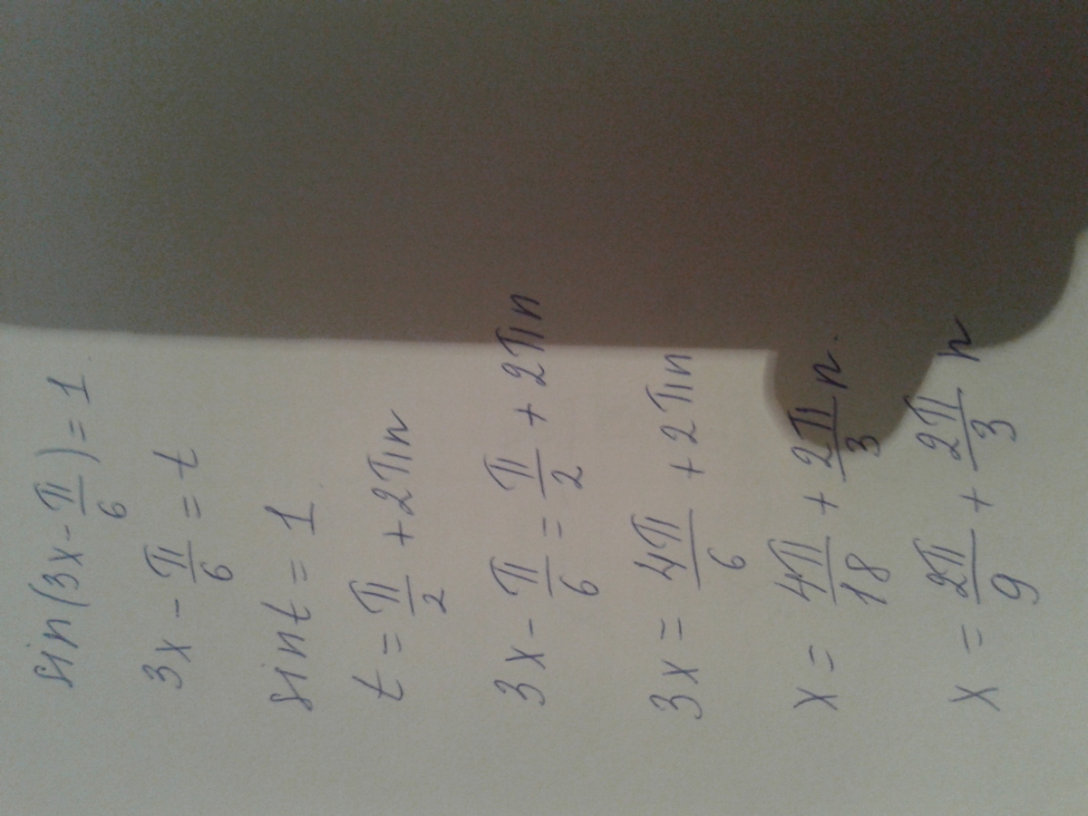 Решить уравнение : #1 sin (3x-п/6)-1=0 ; #2 cos (2п-х)-sin (3п/2+х)+1