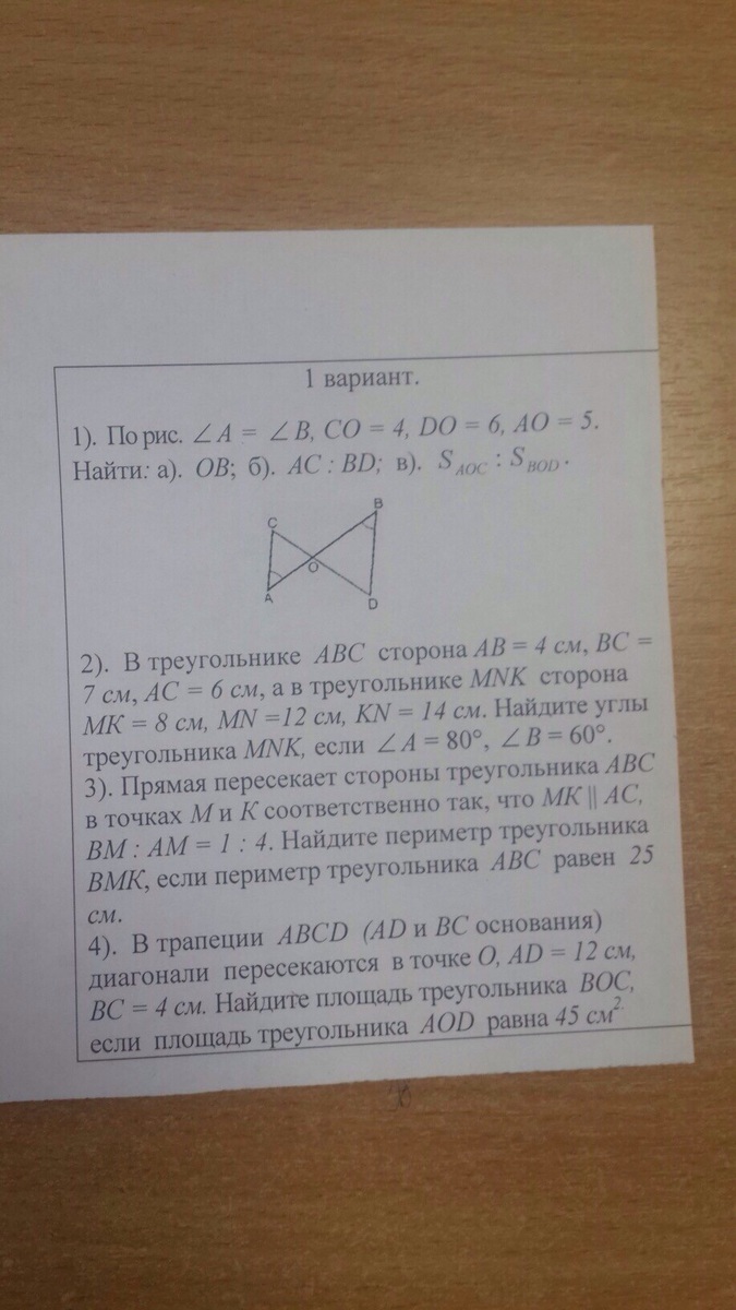 1) (рис 1) треуг МВК подобен треуг АВС т.к. АС параллельна МК