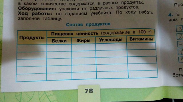 практическая работа изучаем состав продуктов 3 класс (таблица)