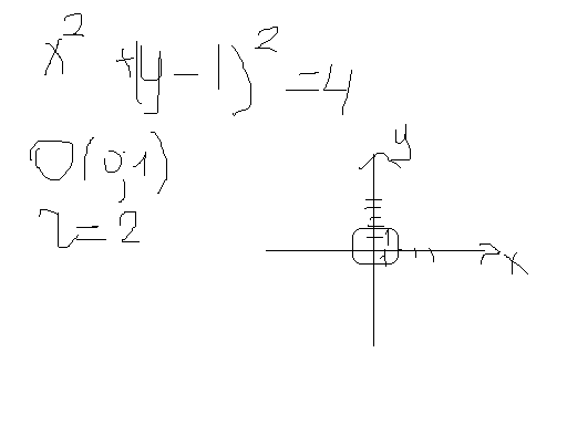 Окружность задана уравнением х2(в кв.)+(у-1)2(в кв.)=4. Напишите уравнение прямой, проходящей через её центр и параллельной оси абсцисс.