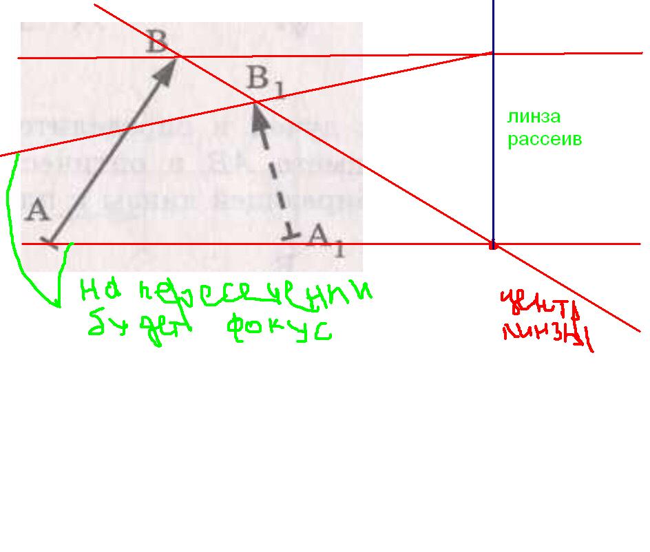 На рисунке показано положение предмета АВ и его изображения А1В1. Найти построением положение линзы