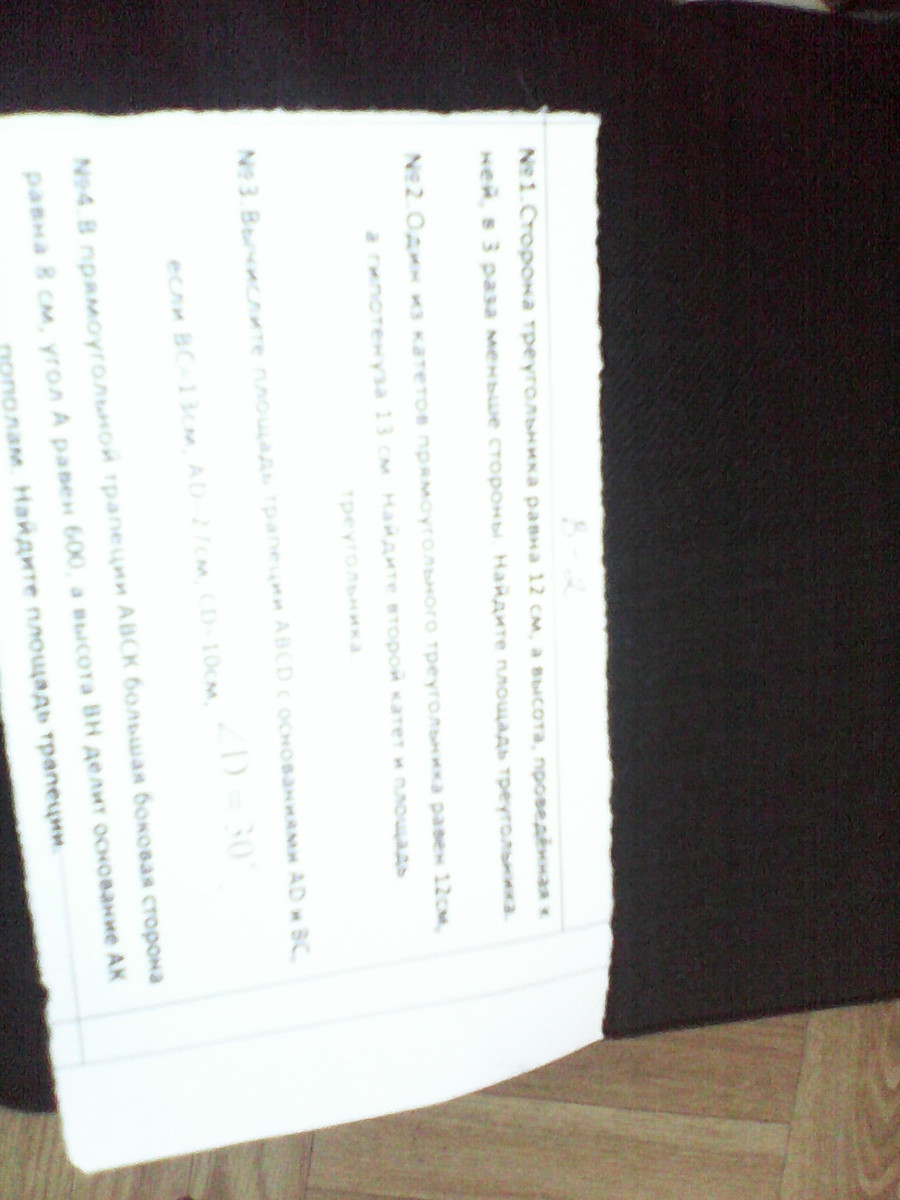 сторона треугольника равна12 см а высота проведеная к ней в3 раза меньше стороны найдите площадь треугольника