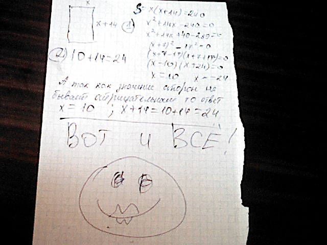 решите задачу с помощью системы уравнений:одна из сторон прямоугольника на 14,больше другой стороны.найдите стороны прямоугольника,если его площадь равна 240.