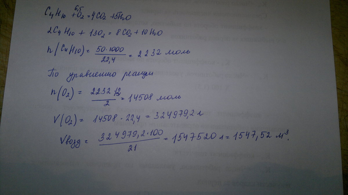 Вычислите объем воздуха, необходимого для сжигания бутана C4H10 объемом 50м3, если объемная доля кислорода в воздухе 21%