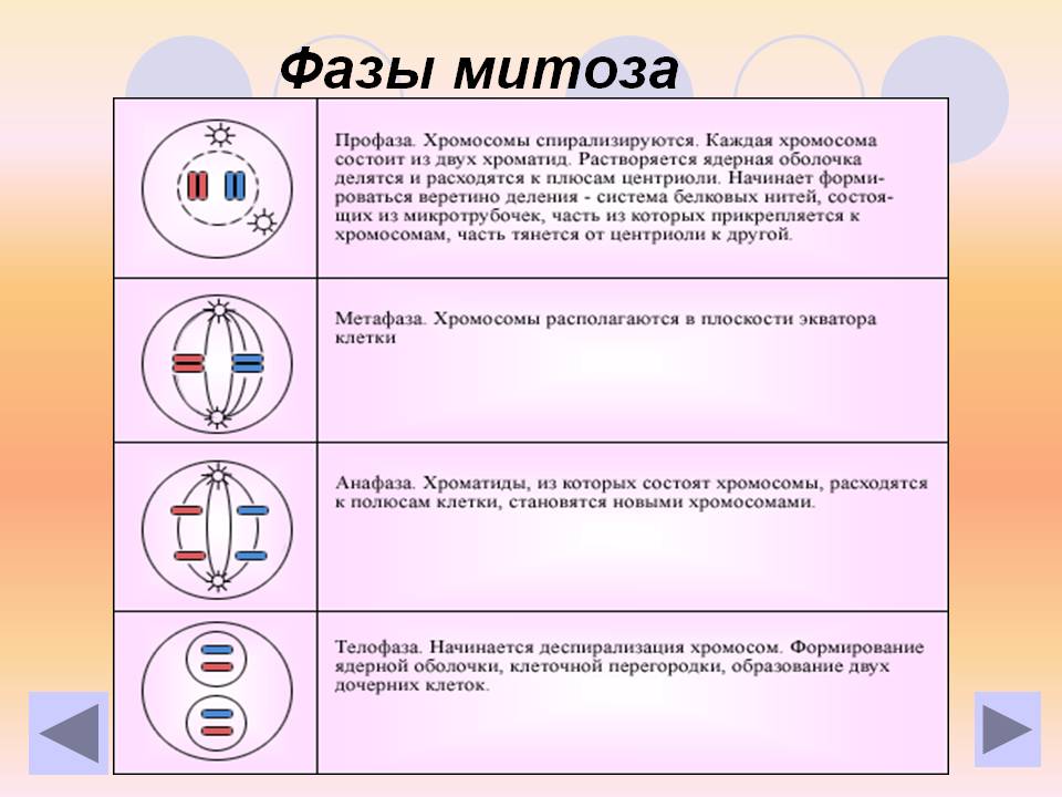 И дальше- начало деления клетки... все идет так как описано в табличке. Профаза, метофаза, анафаза, телофаза(в приложении)...