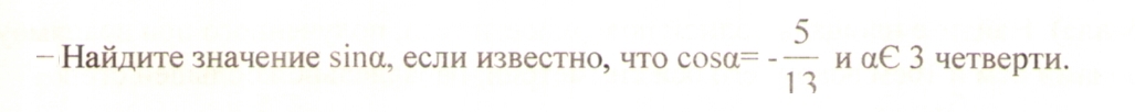Ребят помогите решить задание...... найдите значение sinа, если известно, что cosа=-5/13 и при а принадлежит 3 четверти