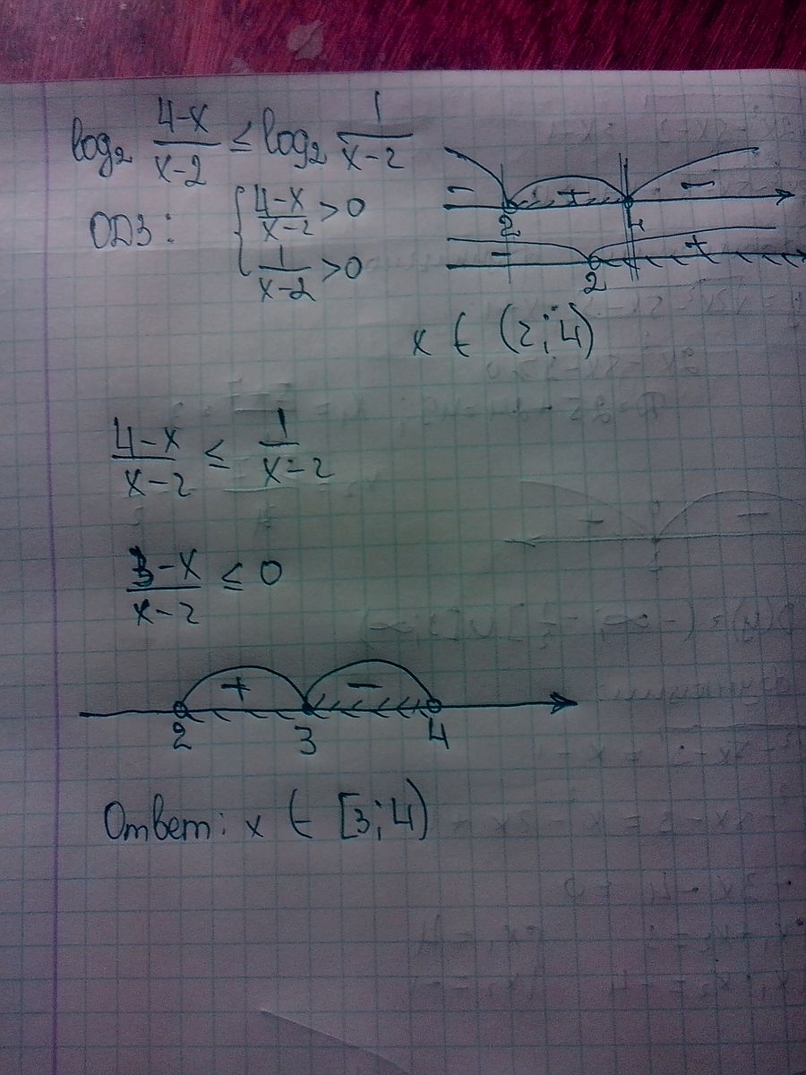 Логарифмическая функция с основанием 2 - возрастает. Большему значению функции соответствует большее значение аргумента.