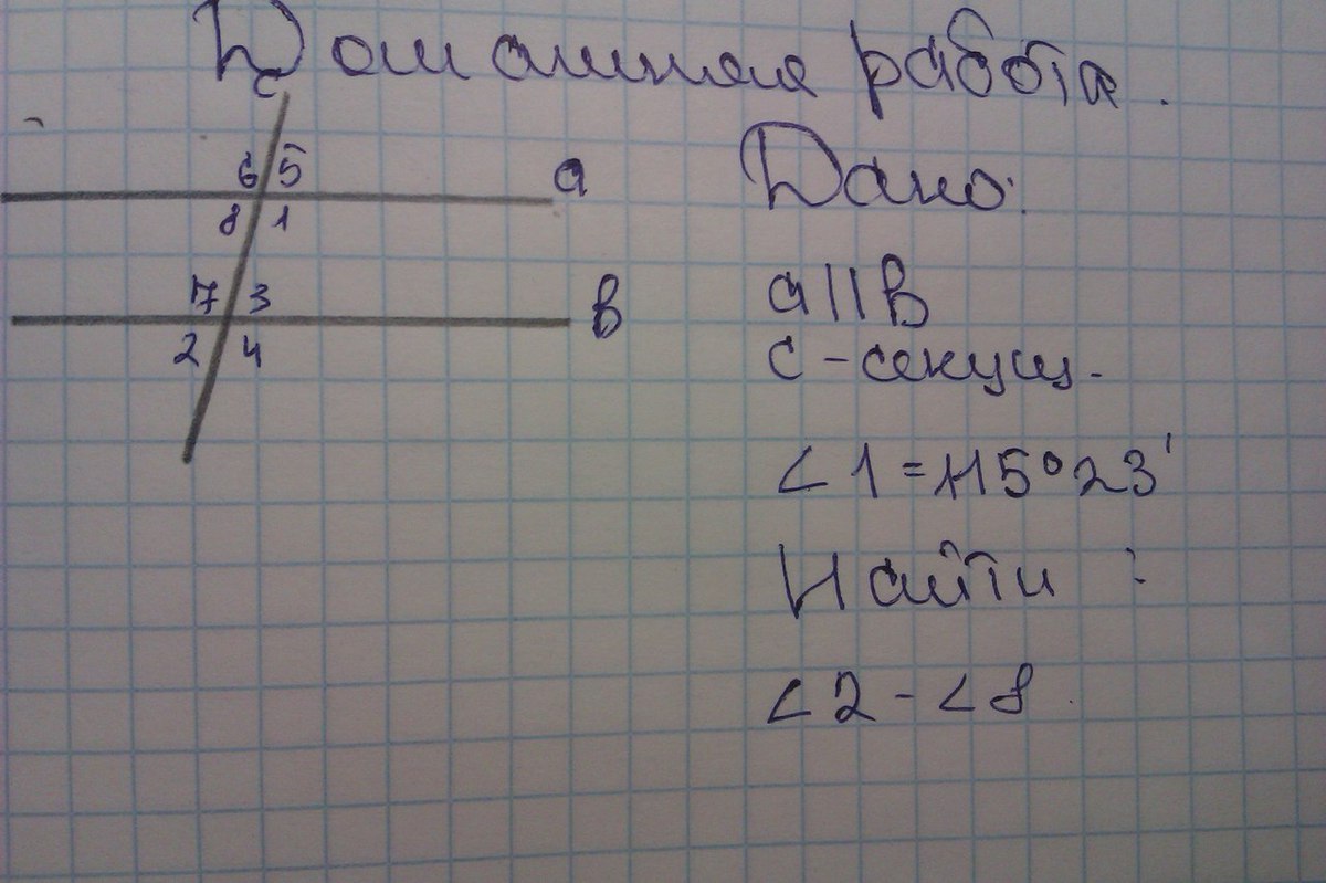 угол 1 равен углам 6,7,4 и равен 115*23'