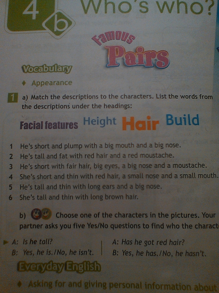 Тут нужно сопоставить описание внешности с соответствующей картинкой. Картинки не видны, к сожалению