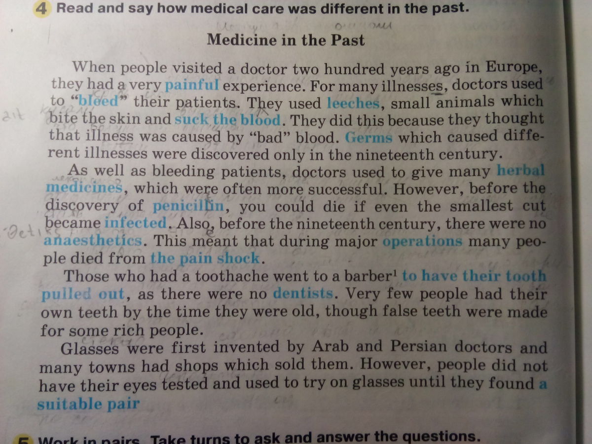 Вместе с кровопусканием лекари использовали лекарства, сделанные из трав, которые успешно боролись с заболеваниями. Однако, несмотря на это, до того, как был изобретен пенициллин, вы могли умереть от простой царапины, если в нее попала инфекция. Кроме того, до 19 века в мире не существовало анестетиков. Это означало, что пациент во время операции имел все шансы умереть от болевого шока.
