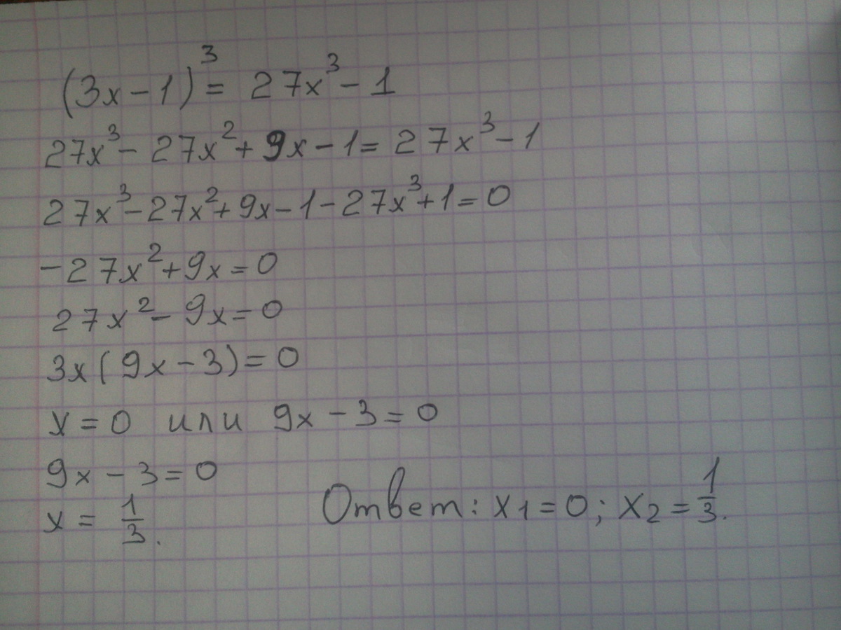 27 х(в кубе) -9 х(в квадрате)+ 9 х- 1= 19683 х(в кубе) - 1