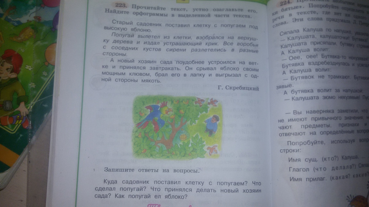 1.Старый садовник поставил клетку с попугаем под высокую яблоню.