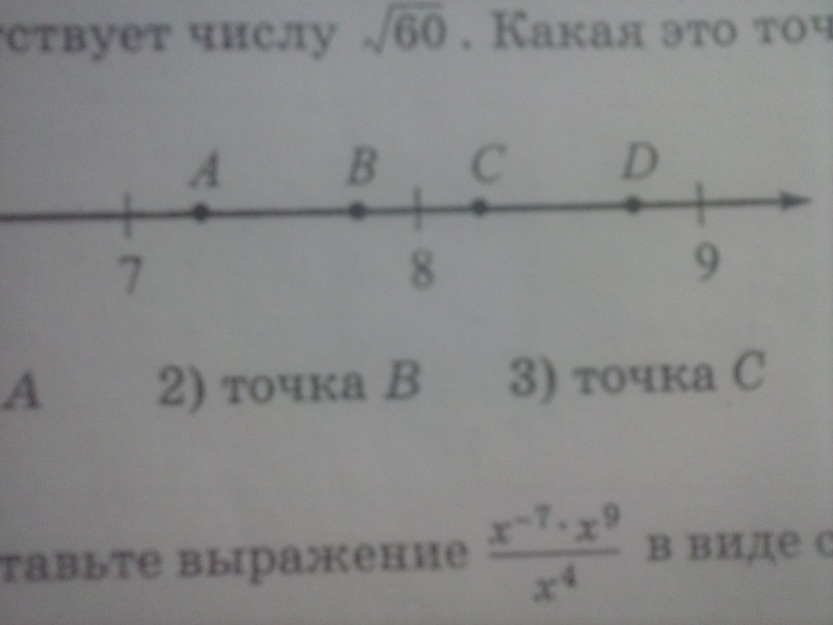 Одна из точек, отмеченных на координатной прямой, соответствует числу √60. Какая это точка?