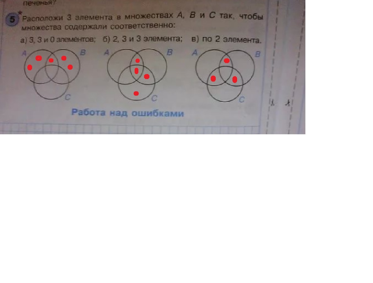 расположи 3 элемента в множествах а в и с так чтобы множества содержали соответственно: а) 3,3 и 0 элементов б) 2,3 и 3 элемента в) по 2 элемента