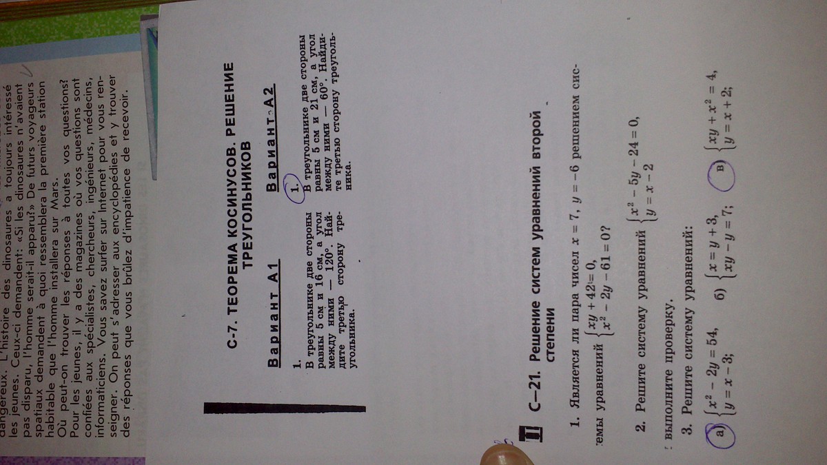 В первом номере пользуемся теоремой косинусов и легко находим третью сторону!