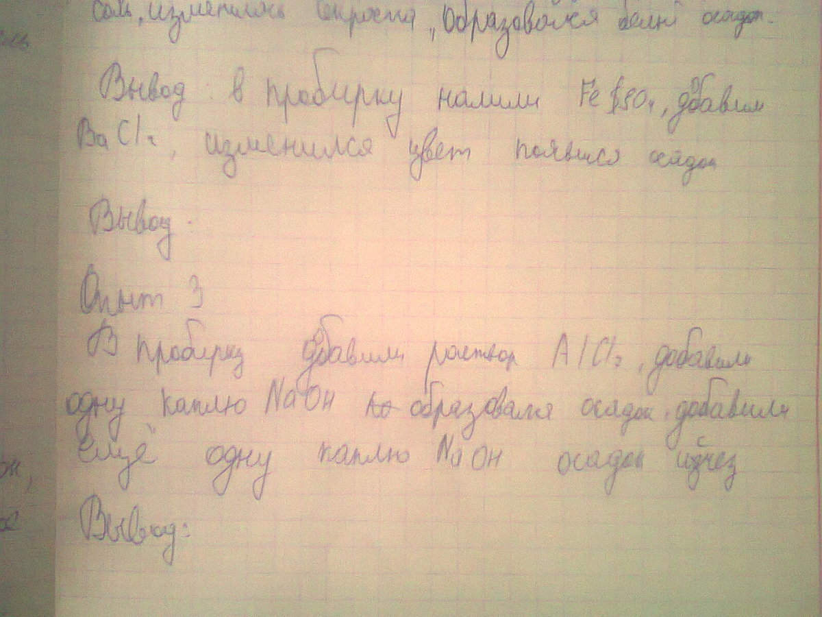 Сделать к опыту Номер 2 вывод и составить уравнения реакций (как сделано в 1 опыте).Также написать реакции ионного обмена и в ионной форме