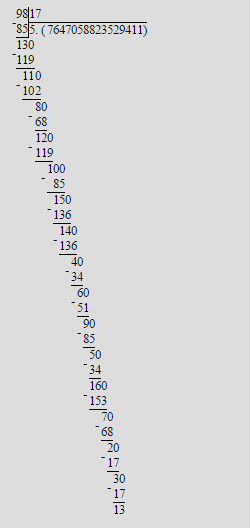 Выполнить деление столбиком для следующих пар чисел: 98 и 17 , 156 и 47 , 253 и 51, 347 и 72 .