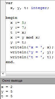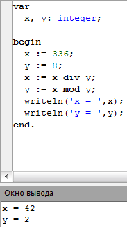 y : = x mod y;