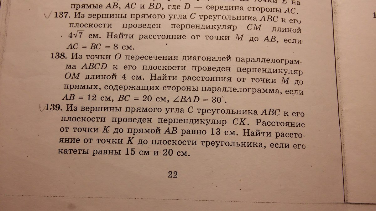 137) Из условия следует, что треугольник АВС - равнобедренный, острые углы в нём по 45°.