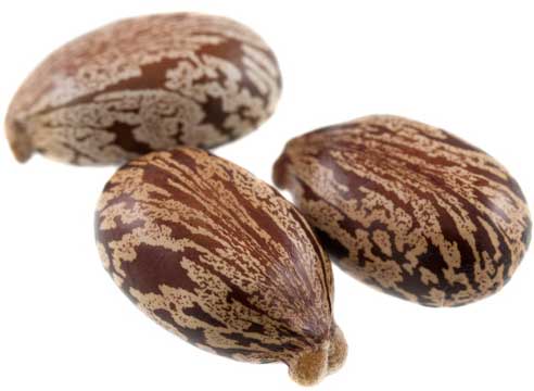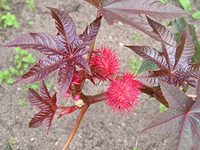 клещевина Родина данного растения тропическая Африка,она вырастает высотой до 10 метров.Ядовитыми являются все части растения,но основные яды сосредоточены в семенах..Её семена похожи на фасоль или бобы,Прием ребенка внутрь одного семени смертельно для ребенка,6-8 семян взрослого человека.Признаки отравления: тошнота,рвота,боль,жжение,диарея,головная боль,сонливость,судороги.