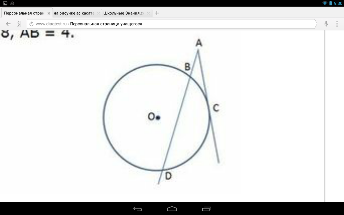 АС^2=АД*АВ,по теореме о касательной и секущей. АС=8 см,АВ=4 см,АД=АС^2/АВ=8*8/4=16 см,АД=АВ+ВД,ВД=АД-АВ=16-4=12 см.