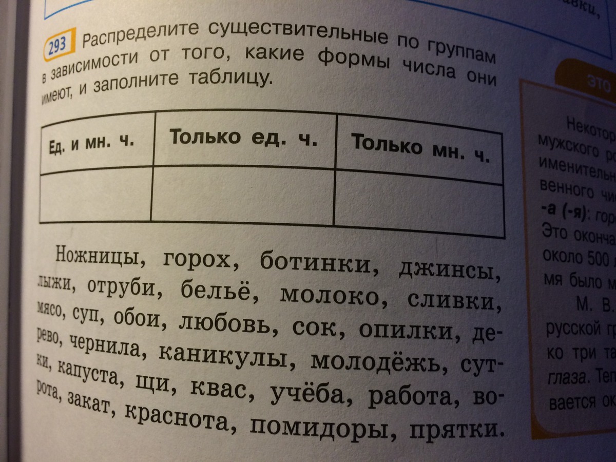 Распределите существительные по группам в зависимости от того , какие формы они имеют