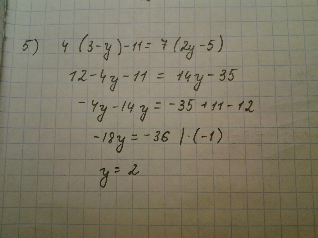 4(3-y)-11=7(2y-5)