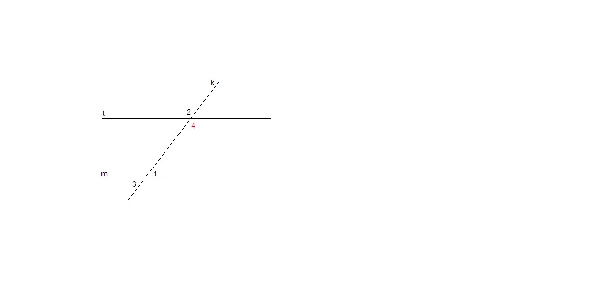 ∠1 + ∠4 = 180° так как эти углы внутренние односторонние при пересечении параллельных прямых t и m секущей k.