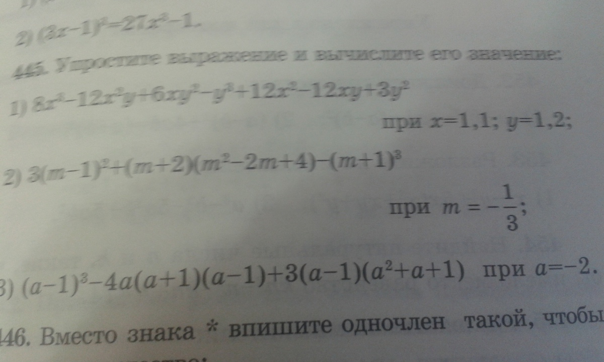 1) 8х³-12х²у+6ху²-у³+12х²-12ху+3у²=(8х³-12х²у+6ху²-у³)+(12х²-12ху+3у²)=