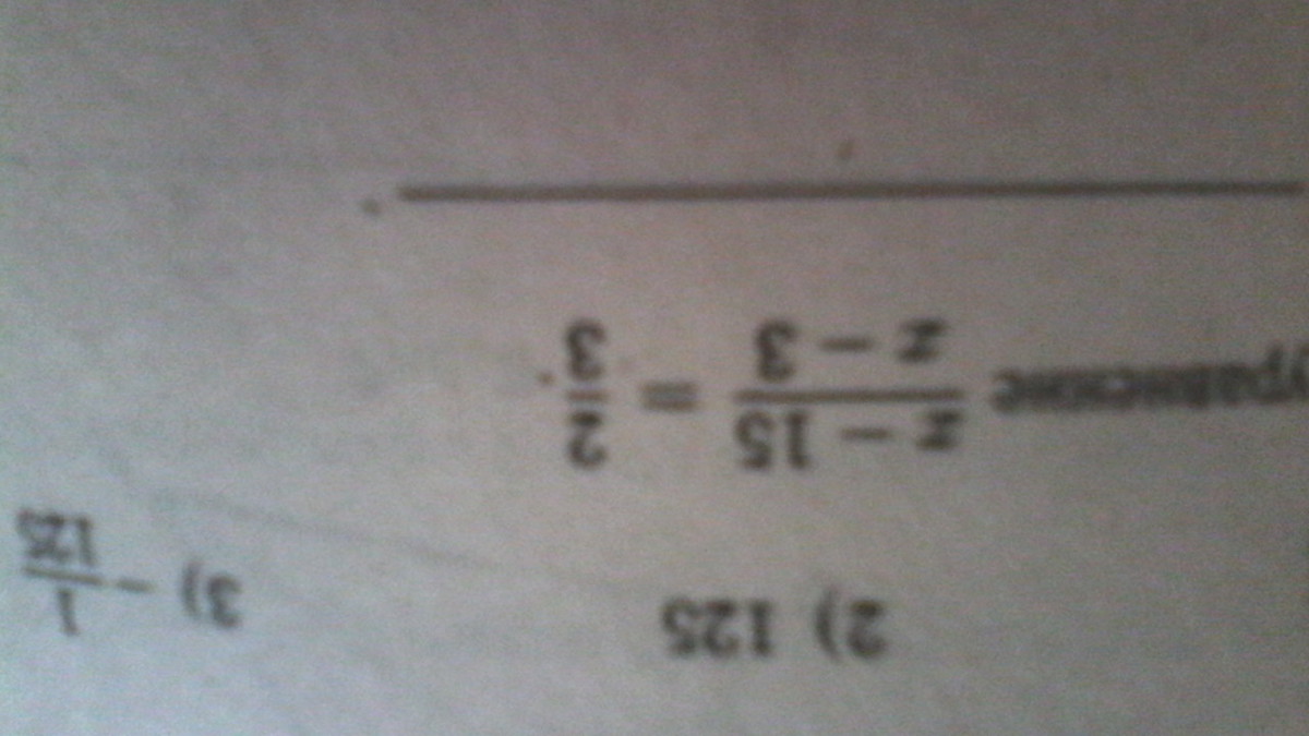 frac{x-15}{x-3} = frac{2}{3}  \  frac{x-15}{x-3} - frac{2}{3} =0 \ frac{3(x-15)-2(x-3)}{x-3}=0 \  frac{3x-45-2x+6}{x-3}=0 \ frac{x-39}{x-3}=0 \  left { {{x-39=0} atop {x-3 neq 0}} right.  \  left { {{x=39} atop {x neq 3}} right.