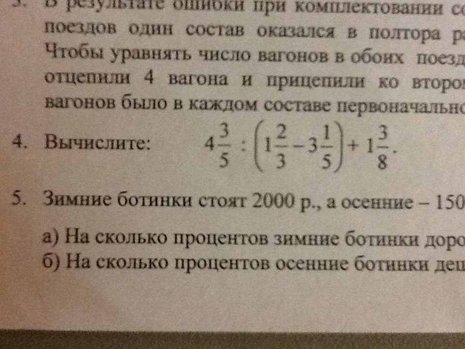 4 3/5 /(5/3 - 16/5) + 1 3/8= 4 3/5 /(25/15 - 48/15) + 1 3/8= 4 3/5 /(- 23/15) + 1 3/8= 23/5 * (-15/23)+ 1 3/8= -3+ 1 3/8= -24/24 + 33/24= 33/24- 24/24= 9/24= 3/8
