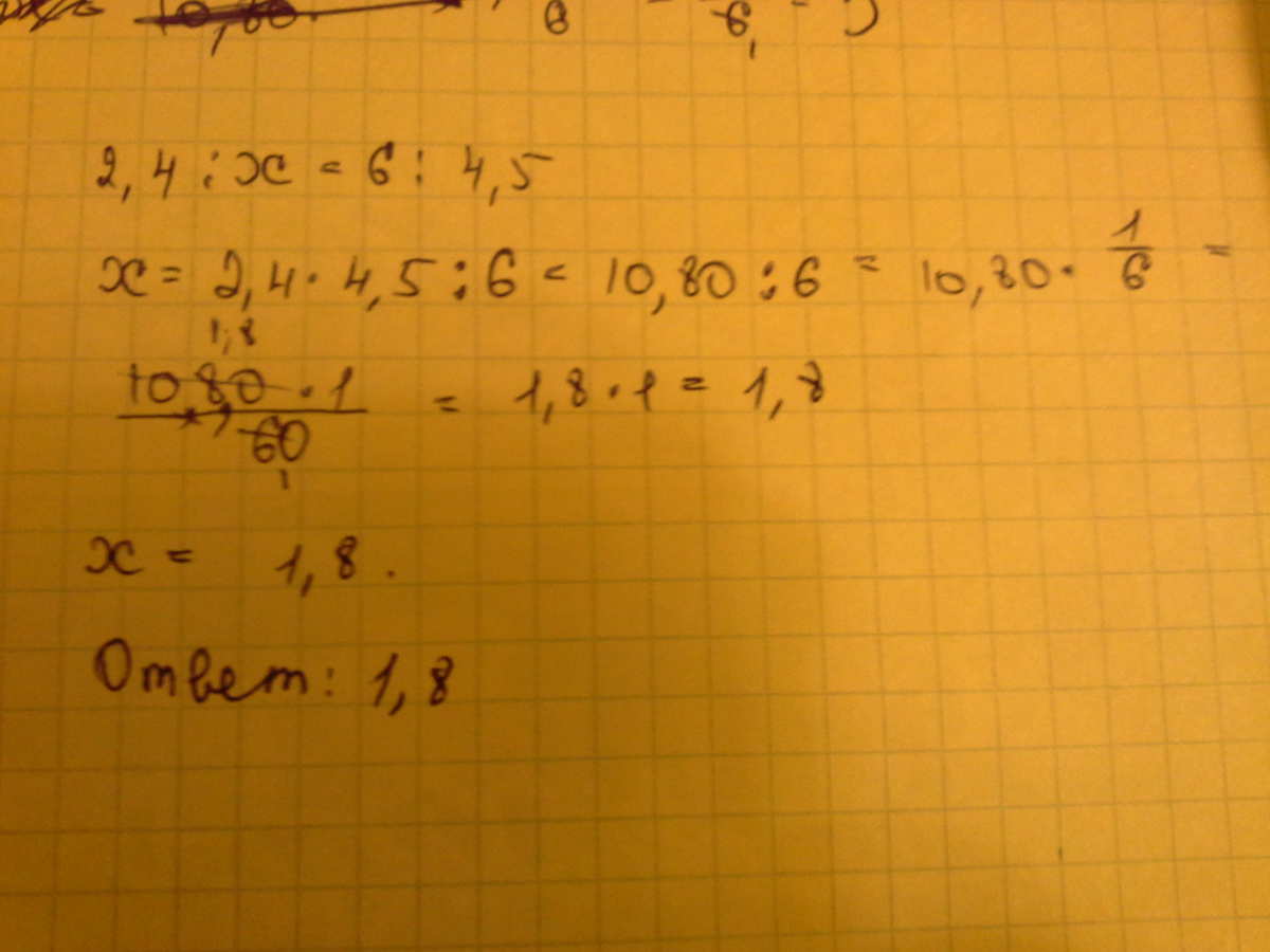 Ответ: 1,8 - неизвестный крайний член пропорции