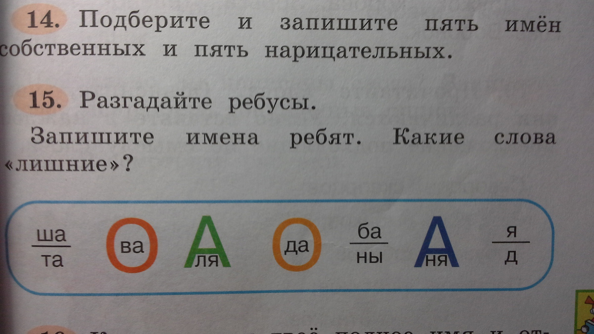собака,кошка,машина,предмет,урок; Лера,Костя,Маша,Саша,Андрей